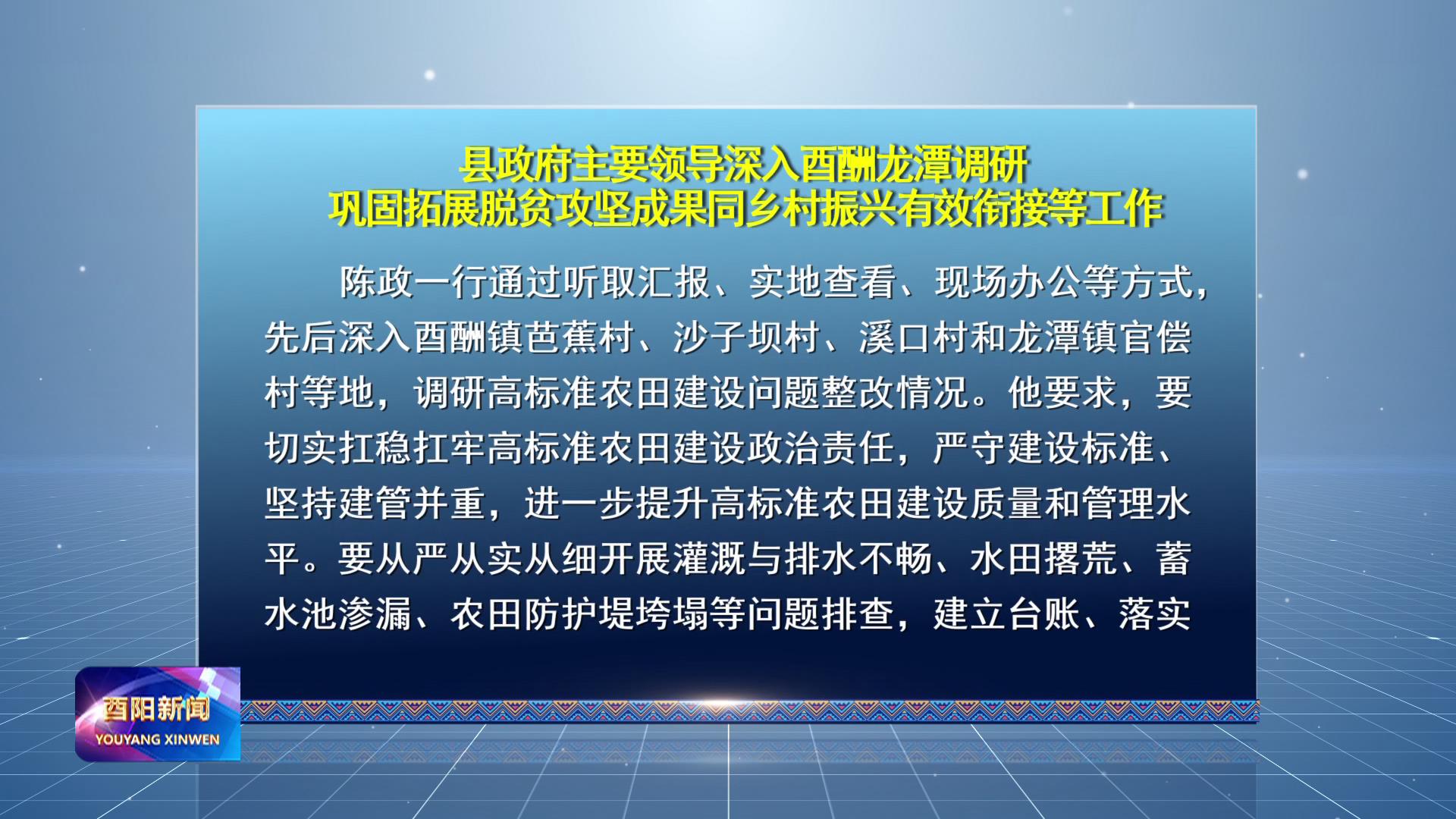 县政府主要领导深入酉酬龙潭调研巩固拓展脱贫攻坚成果同乡村振兴有效衔接等工作