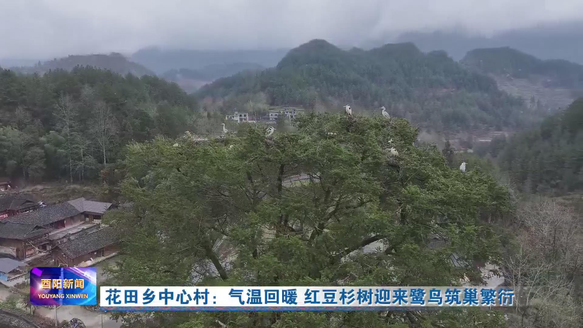 花田乡中心村:气温回暖 红豆杉树迎来鹭鸟筑巢繁衍