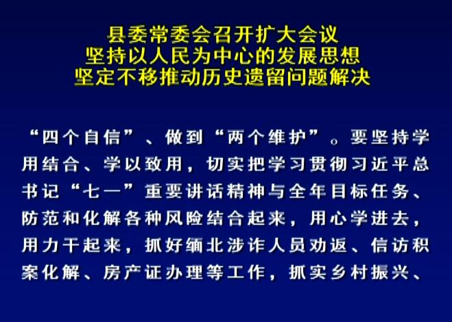 县委常委会召开扩大会议 坚持以人民为中心的发展思想 坚定不移推动历史遗留问题解决